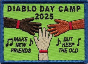 All campers and volunteers receive an original artwork patch each year at camp. These patches symbolize our memories of Diablo Day Camp. The artwork is chosen from the creativity of our campers and elves. If you would like to submit your artwork, simply download, print, design, scan and email back the Patch Contest Form. Please read the form carefully. You must use the shape provided. Your design must include “Diablo Day Camp” and the year. You are limited to 6 colors. You must include a background color and a border color.